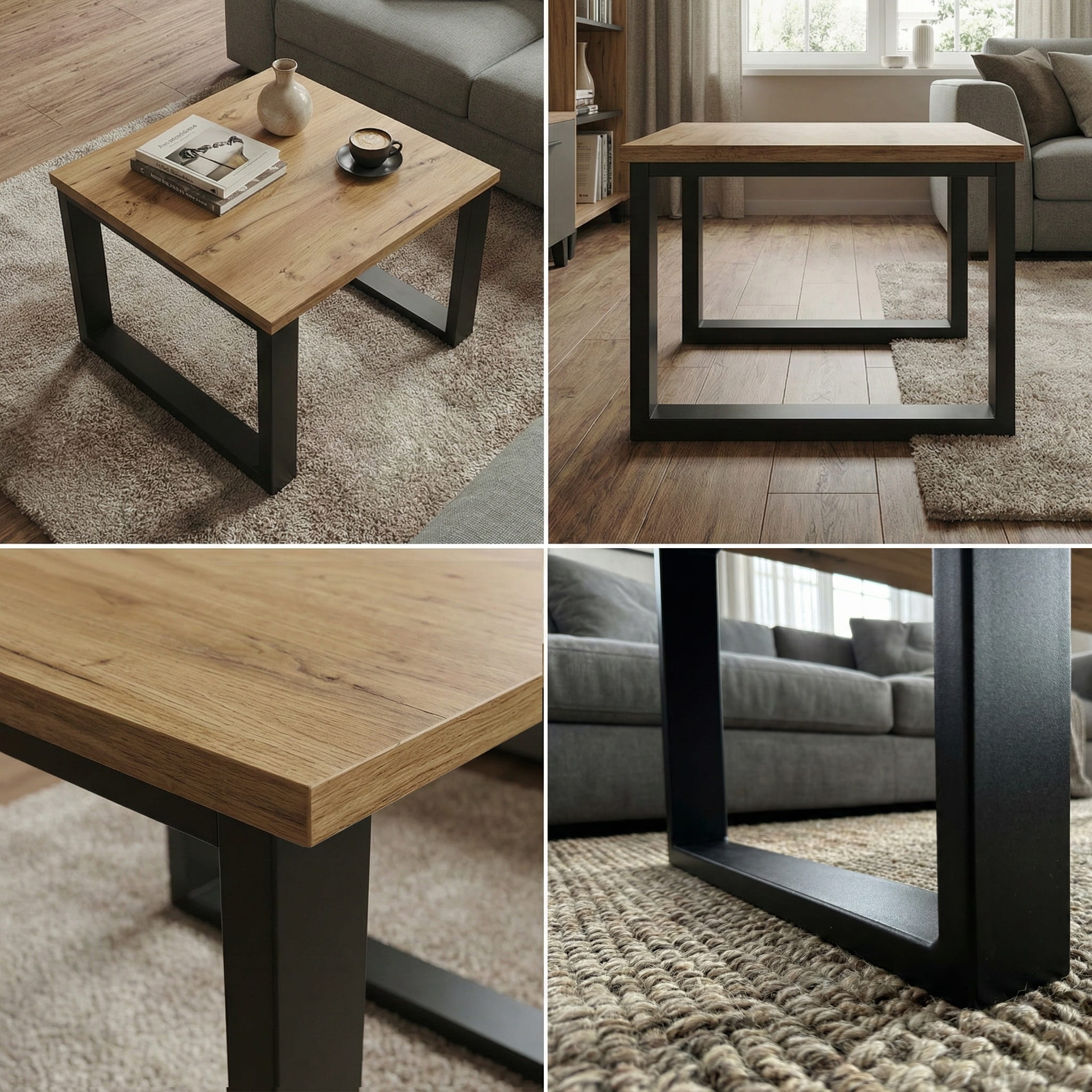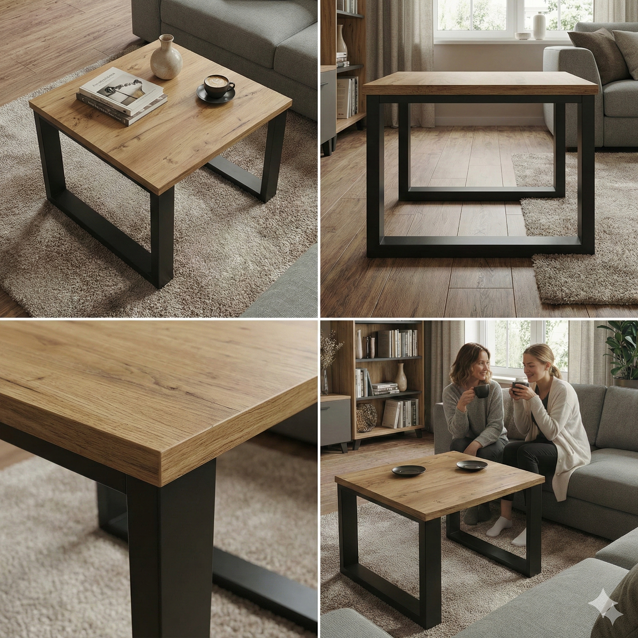 Stolik kawowy LOFT 65x65 cm blat 18mm Dąb craft złoty