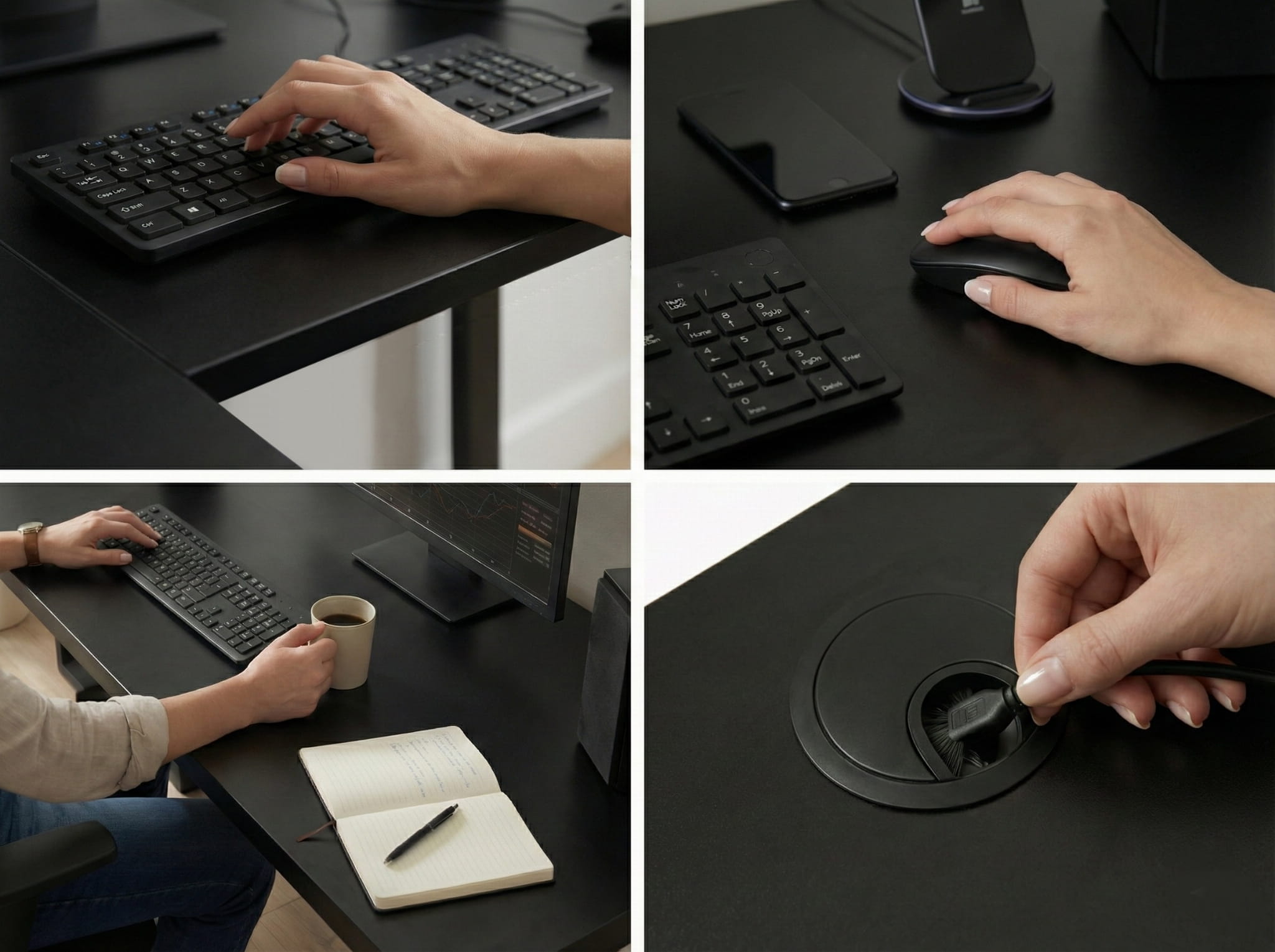 Biurko wyposażone jest w metalowy przepust kablowy klasy premium