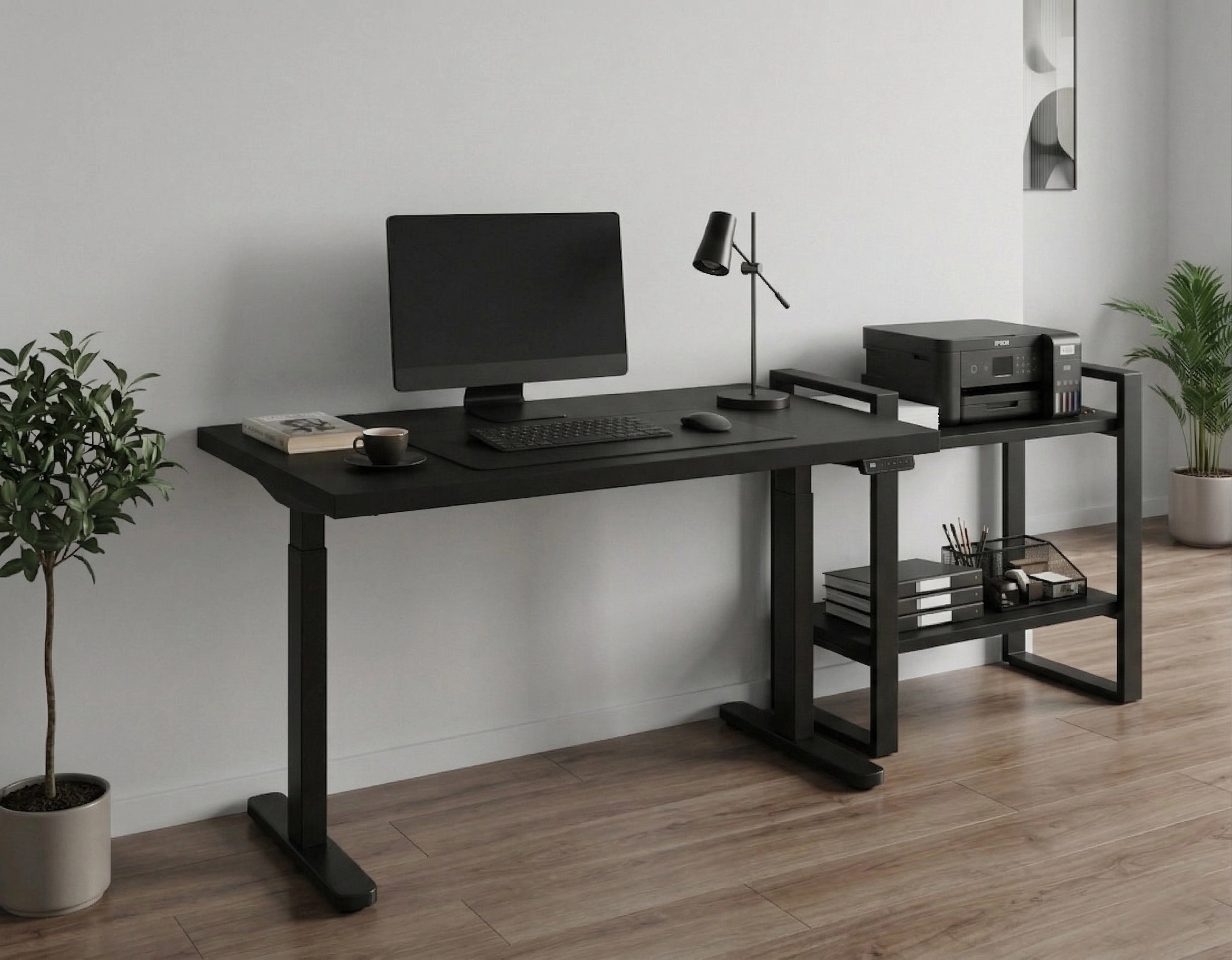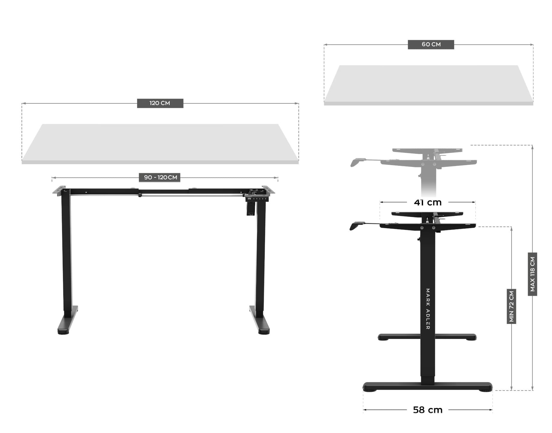 Dzięki regulowanej szerokości stelaża stworzysz przestrzeń, jaką lubisz — rozstaw nóg biurka dopasujesz do swoich potrzeb i warunków mieszkaniowych.