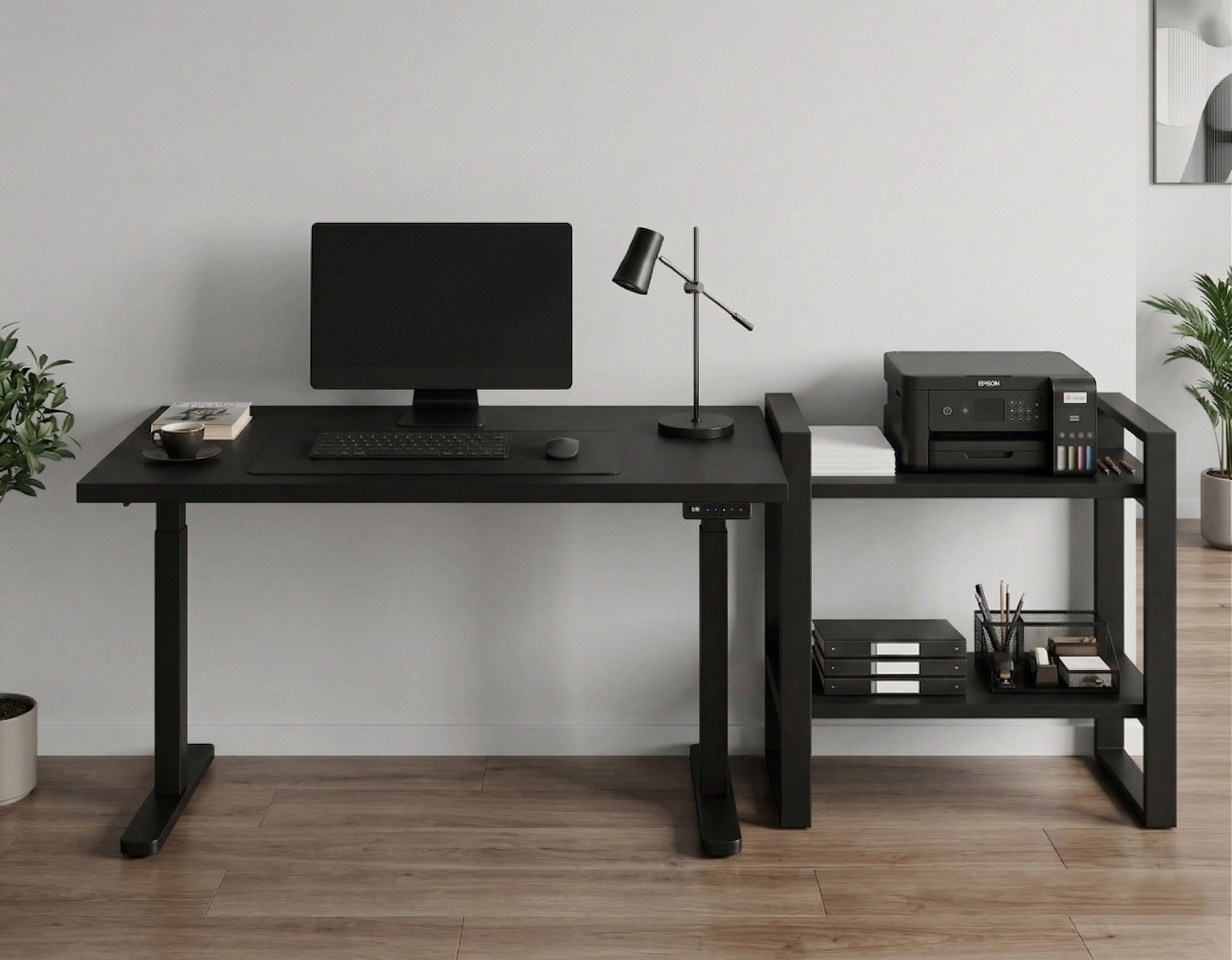 Dzięki regulowanej szerokości stelaża stworzysz przestrzeń, jaką lubisz — rozstaw nóg biurka dopasujesz do swoich potrzeb i warunków mieszkaniowych.