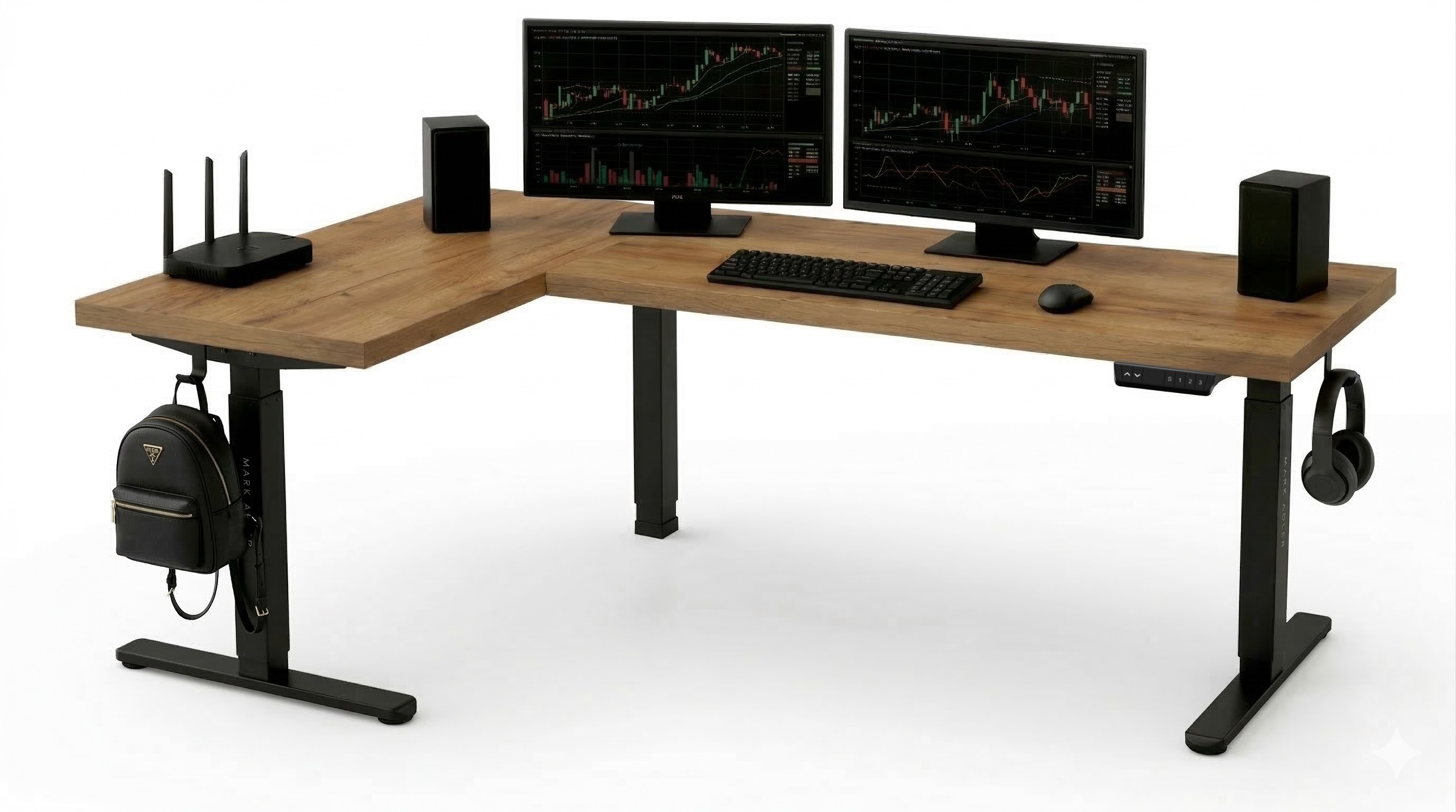NAROŻNE BIURKO ELEKTRYCZNE 120x180 cm Blat pogrubiony 36 mm