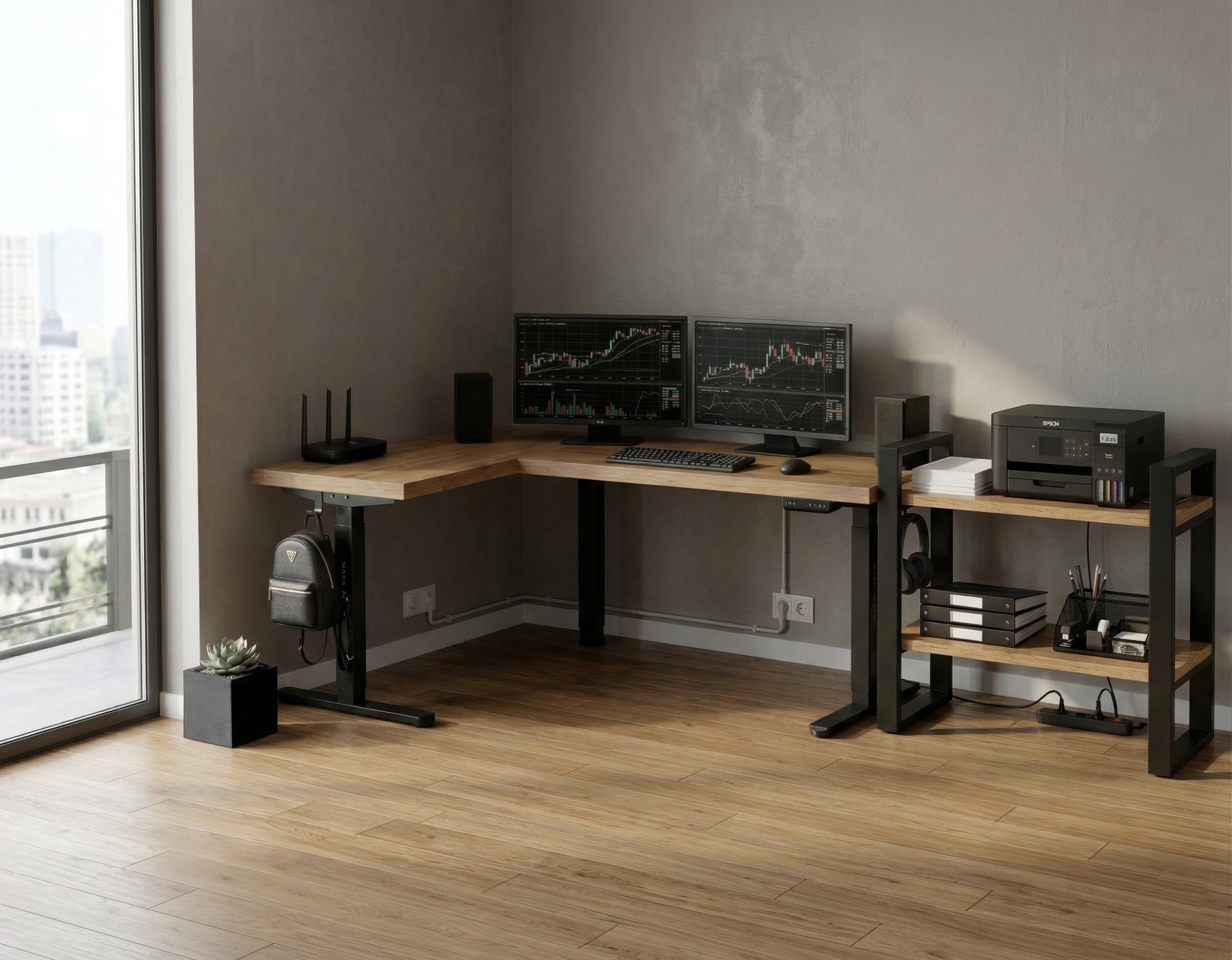 Czy biurko się chwieje? Nie – stalowa konstrukcja + grube nogi zapewniają sztywność.