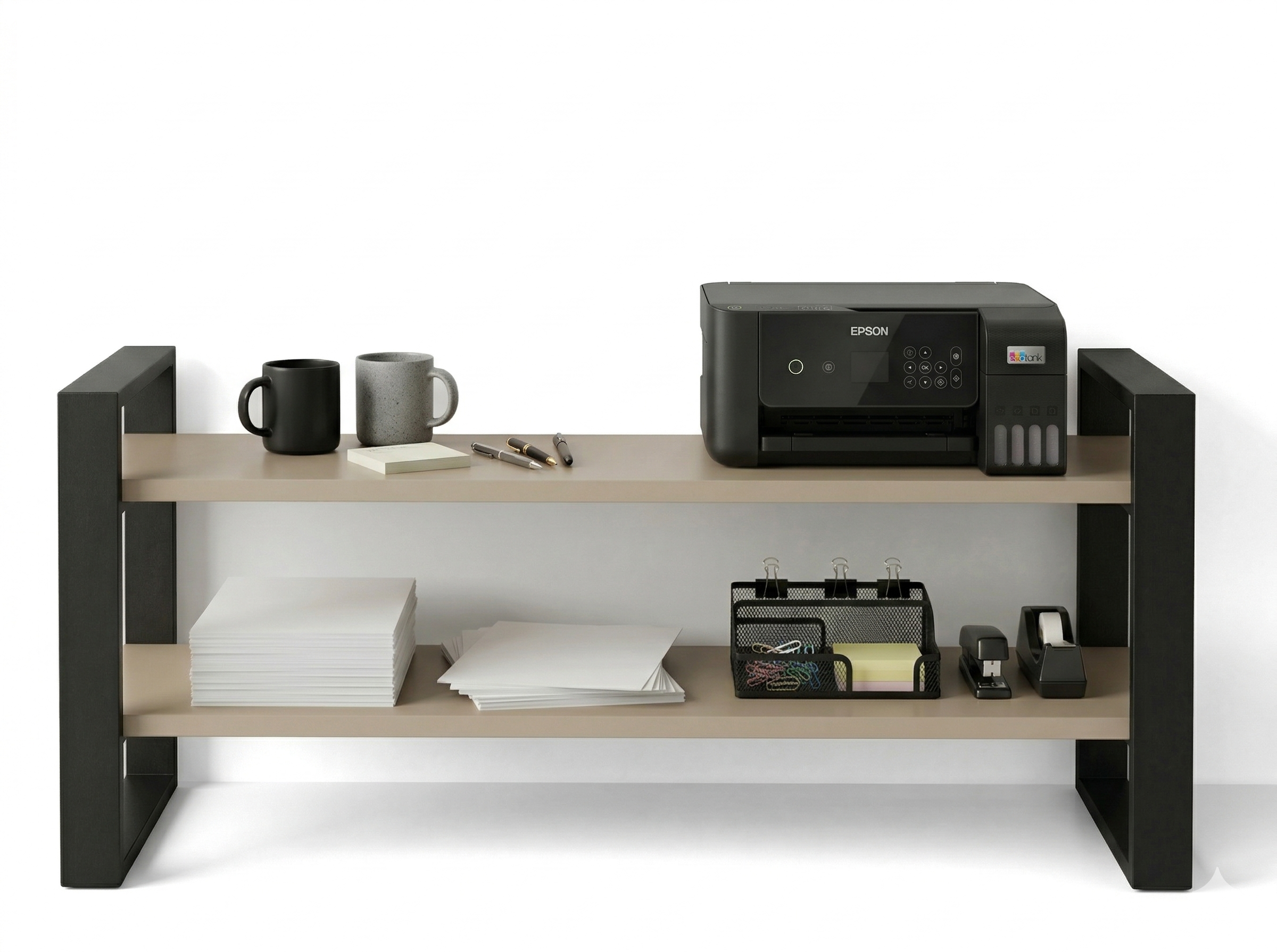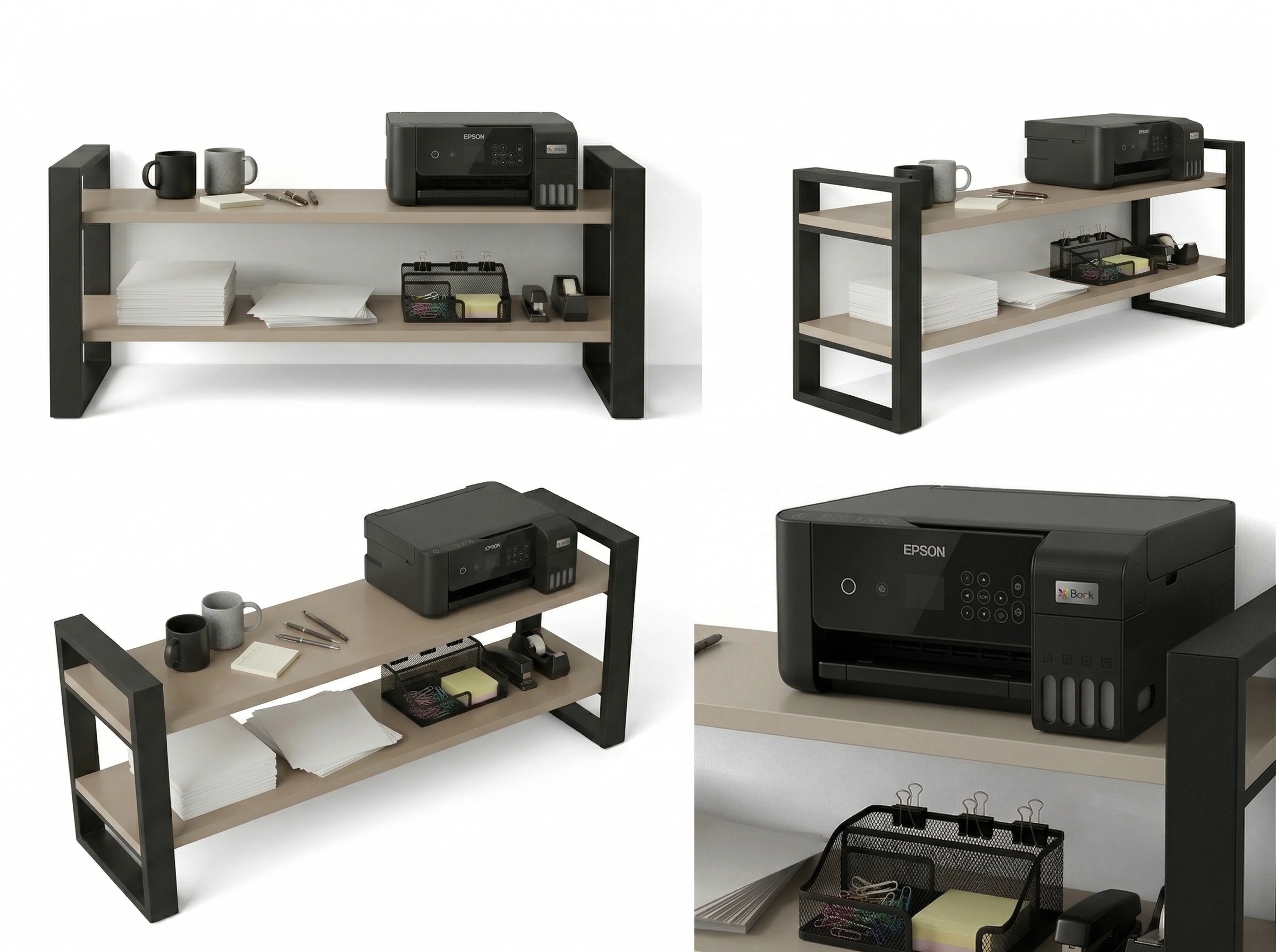 Konstrukcja regału opiera się na solidnym stelażu z profili stalowych malowanych proszkowo na kolor czarny mat, co gwarantuje trwałość i stabilność. Półki wykonane są z wysokiej jakości płyty laminowanej w dekorze Kaszmirowym