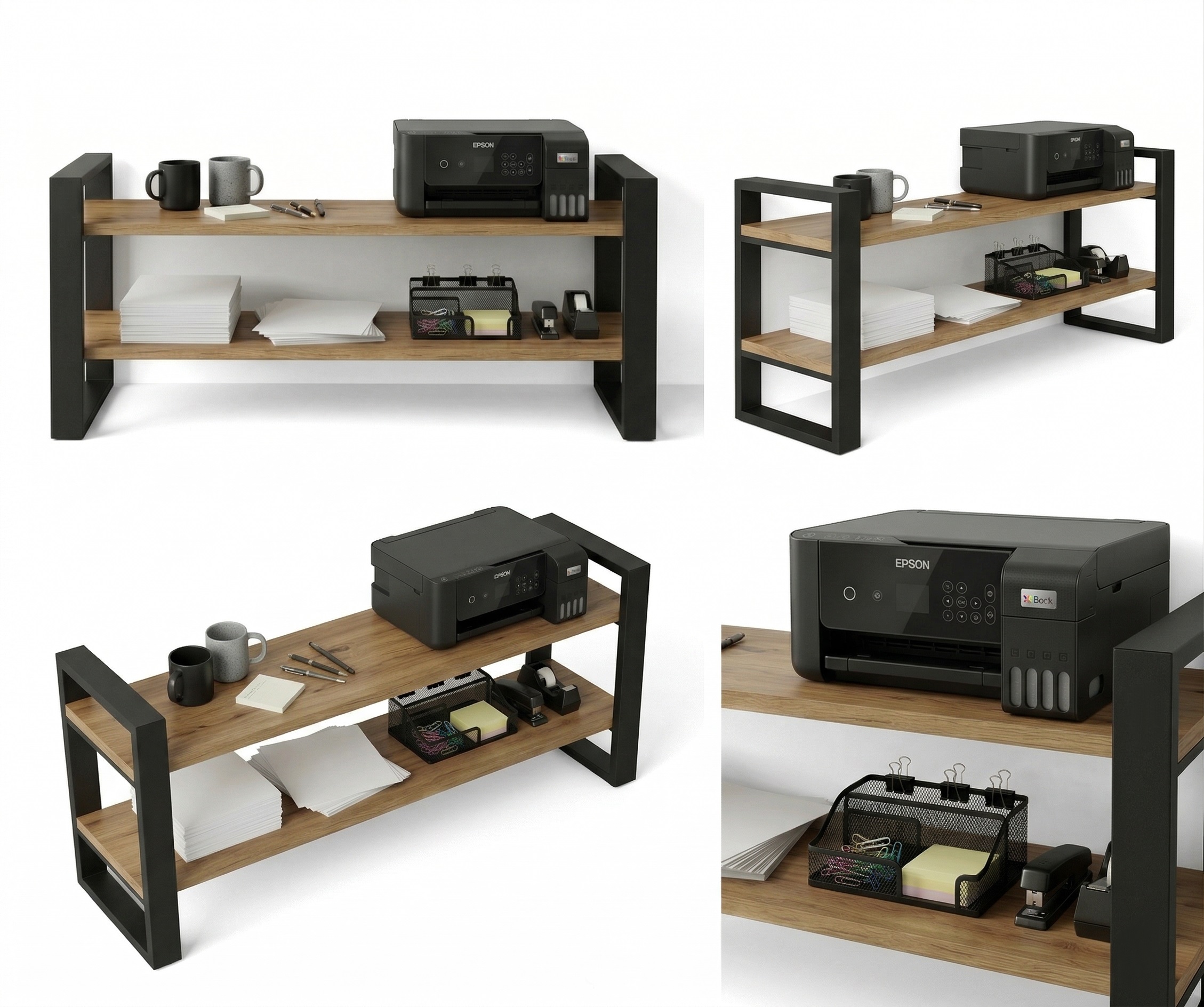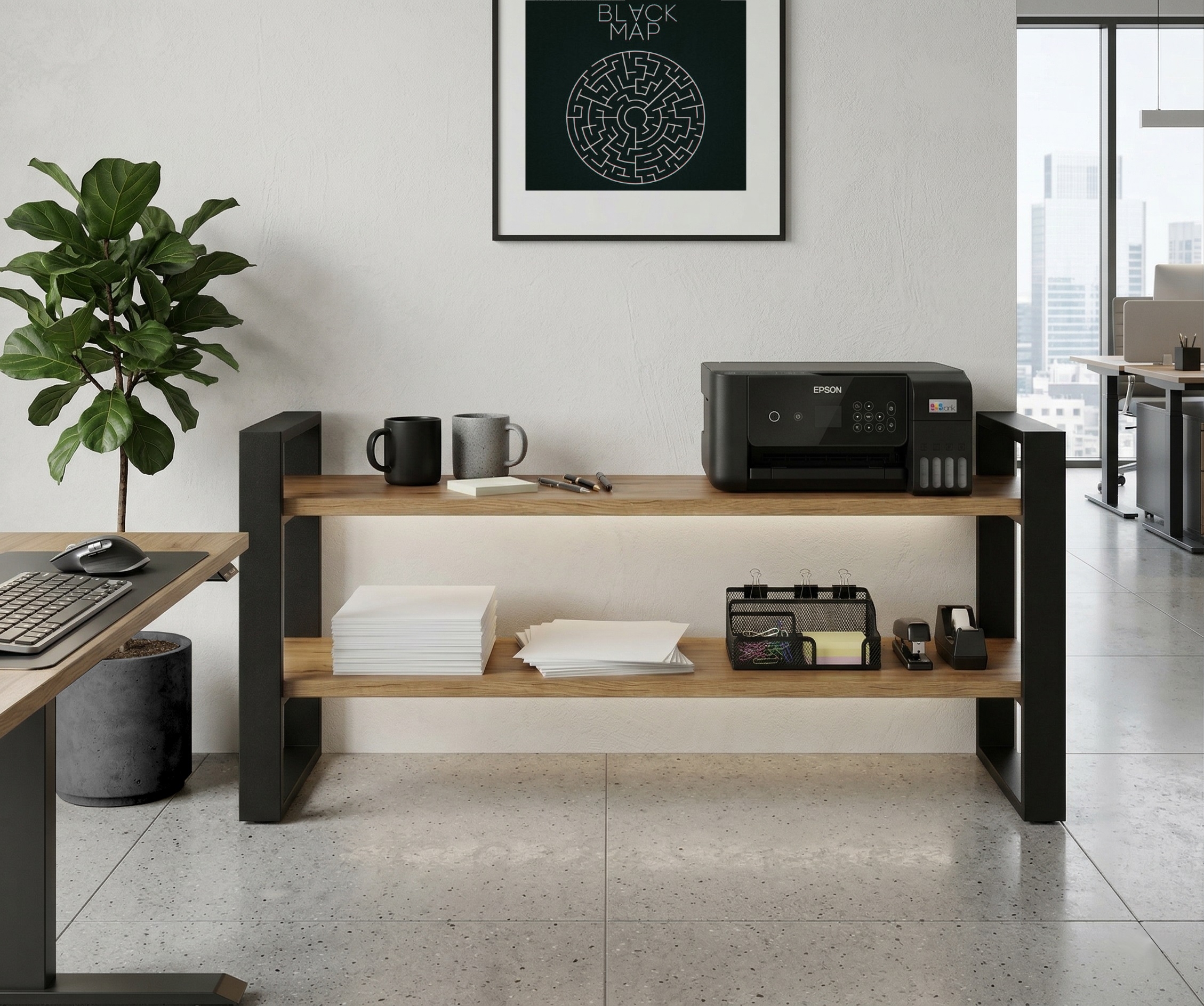 Nowoczesny regał loftowy o wysokości 87 cm to idealne połączenie stylu industrialnego z funkcjonalnością. Szerokość 120 cm i cztery przestronne półki o głębokości 38 cm zapewniają mnóstwo miejsca na książki, dekoracje, rośliny czy akcesoria biurowe.