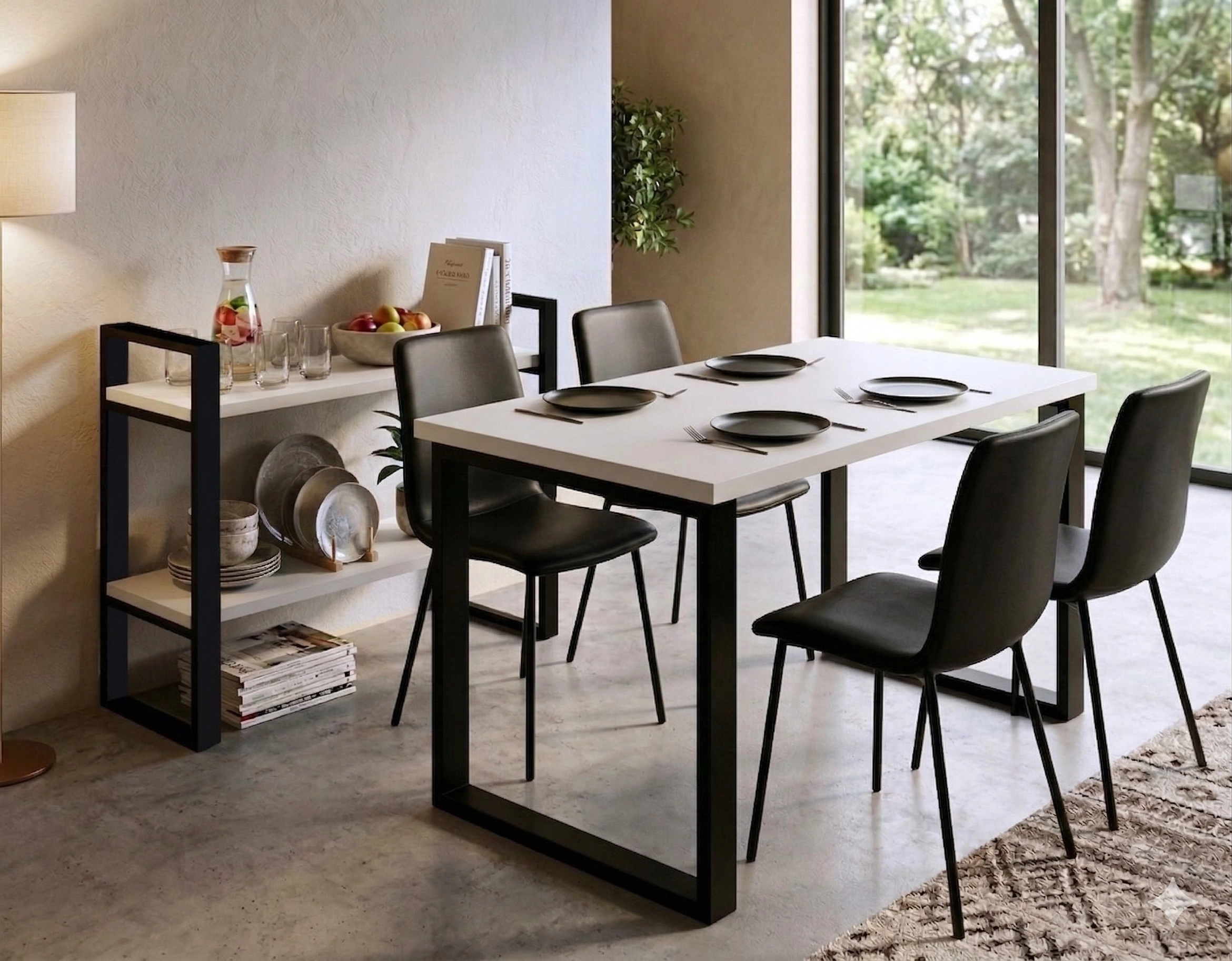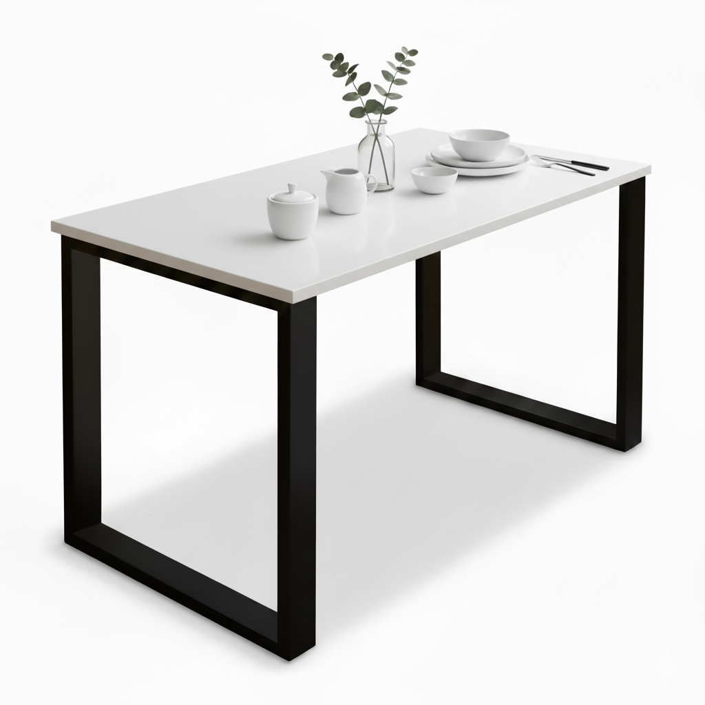 STÓŁ 120x60 CM KUCHENNY DO JADALNI LOFT BIAŁY NOGI METALOWE BLAT 18MM Z CZARNYMI METALOWYMI NOGAMI