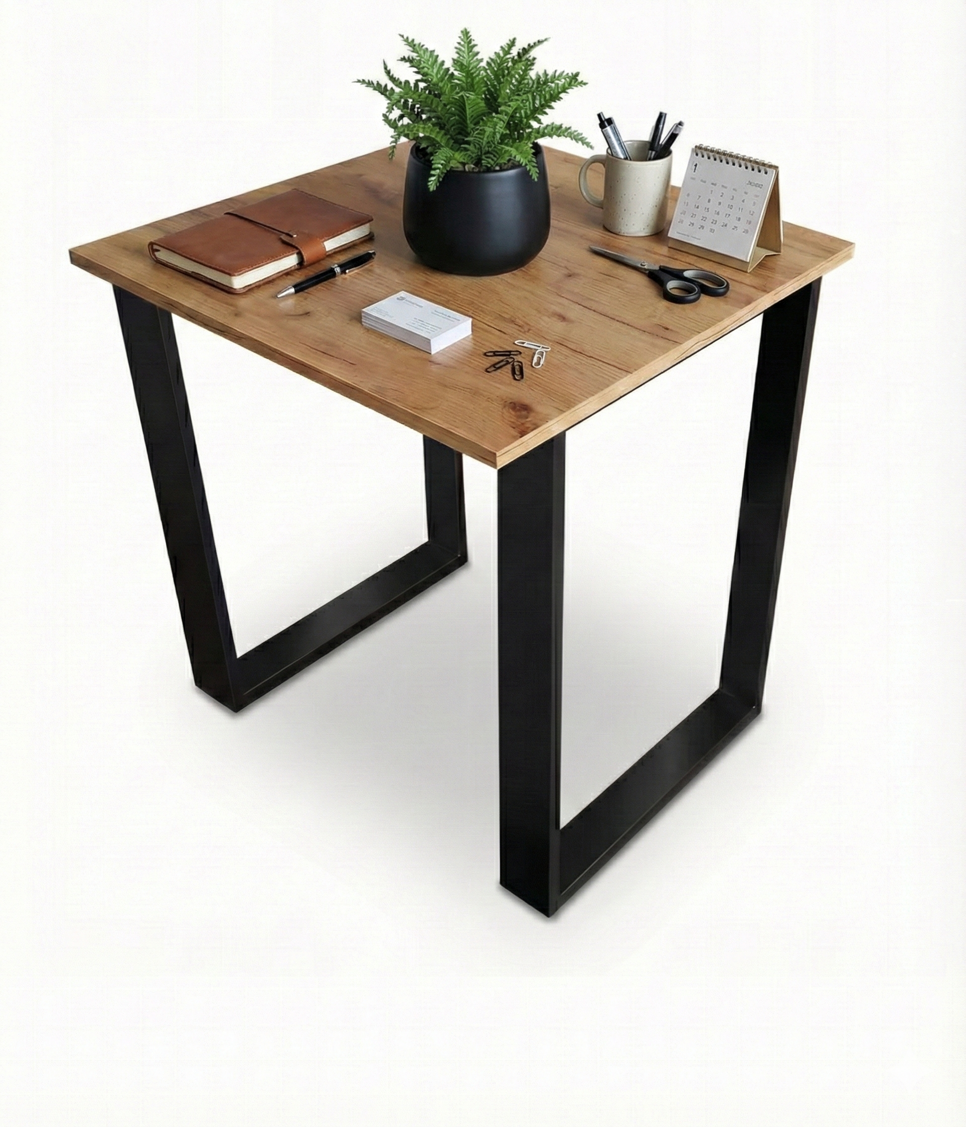 Blat o wymiarach 65 x 65 cm i grubości 18 mm zapewnia solidność i wygodę użytkowania. Metalowe nogi o profilu 6x2 cm w kolorze czarnym nadają mu industrialnego charakteru będąć jednocześnie stabilnym fundamentem.