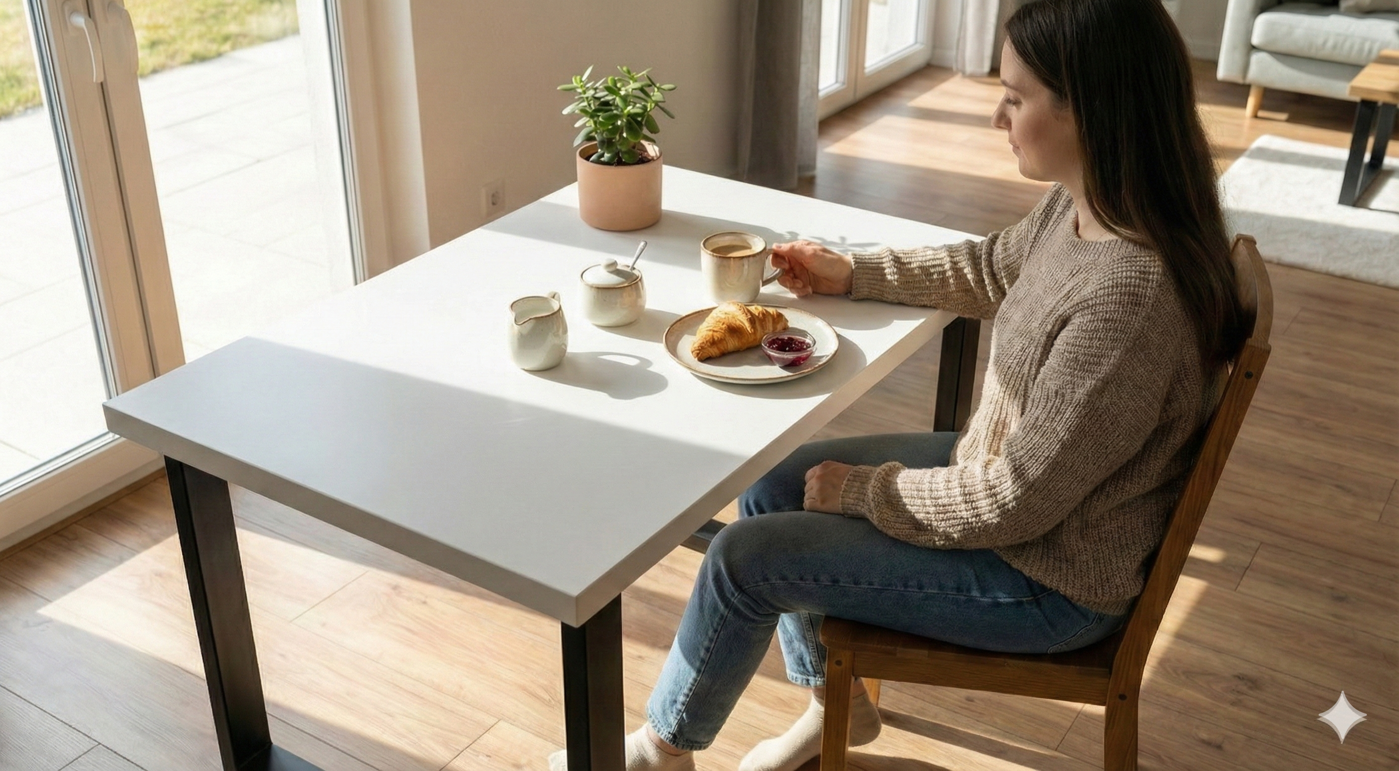 ✅ Idealnie wysoki - blat stołu jest umiejscowiony na takiej wysokości, aby komfortowo siedziało się przy nim na większości rodzajów krzeseł.